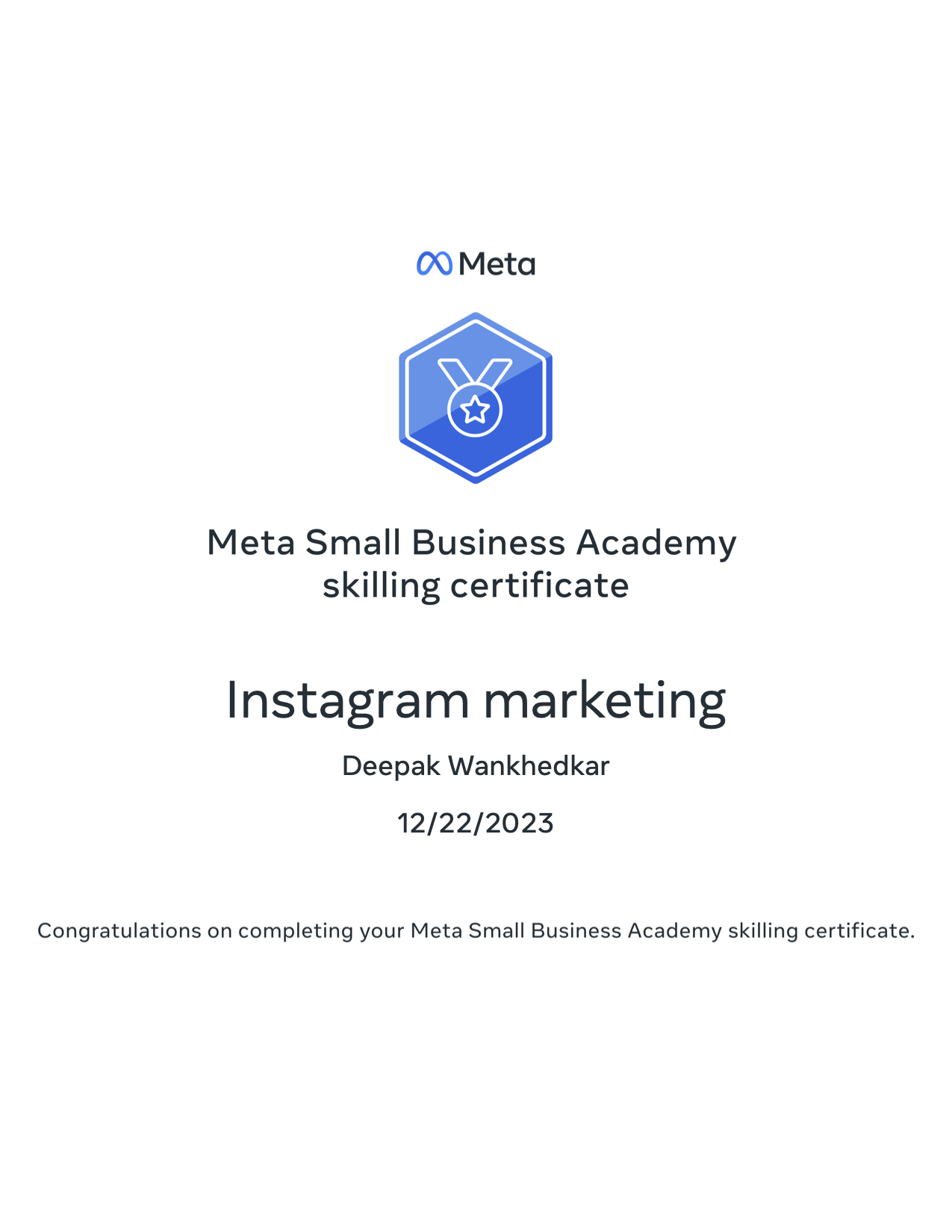 Meta Small Business Academy skilling certificate - Instagram Marketing